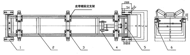 | 1:承重架 2:稱重橋 3:托輥架及托輥 4:測速機構及測速傳感器 5:荷重傳感器 6:皮帶輸送機并配有JL500B稱重控制儀表 | |||||||||||||||||||||||||||||||||||||||||||||||||||||||||||||||||||